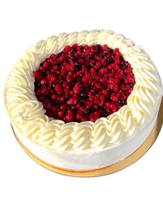 בצק פריך חמאה, קרם גבינה ושמנת עשיר, ציפוי פירות יער